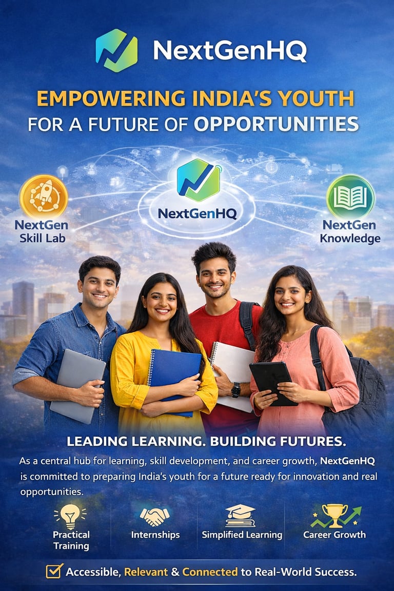 NextGenHQ is the parent company leading an ecosystem focused on learning, skill development, and career growth. With a mission to prepare India’s youth for a future shaped by innovation and real opportunities, it acts as the central hub for all NextGen brands. Through NextGen Skill Lab and NextGen Knowledge, the company offers practical training, internships, and simplified educational content. NextGenHQ is committed to building a future-ready community by making learning accessible, relevant, and connected to real-world success.