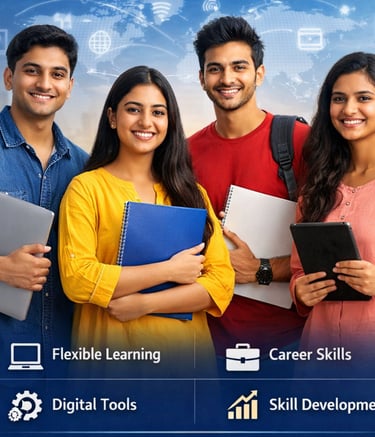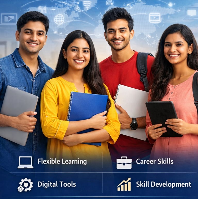 The program covers areas such as career development, business skills, digital tools, and professional growth. Its goal is to provide learners with convenient access to quality education that enhances their employability and supports continuous skill development.